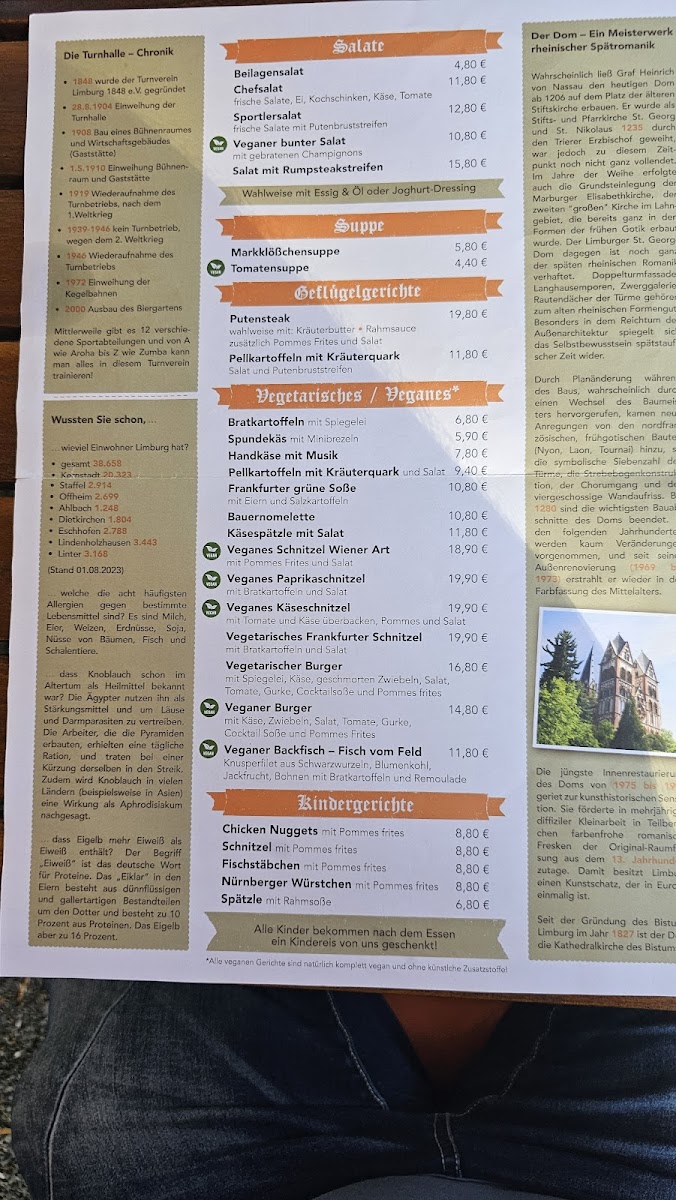Welcome to Zur Turnhalle Limburg, a delightful culinary haven nestled in the charming city of Limburg an der Lahn. Located at Ste.-Foy-Straße 16, this hidden gem is celebrated for its comforting, traditional German fare and a welcoming atmosphere.